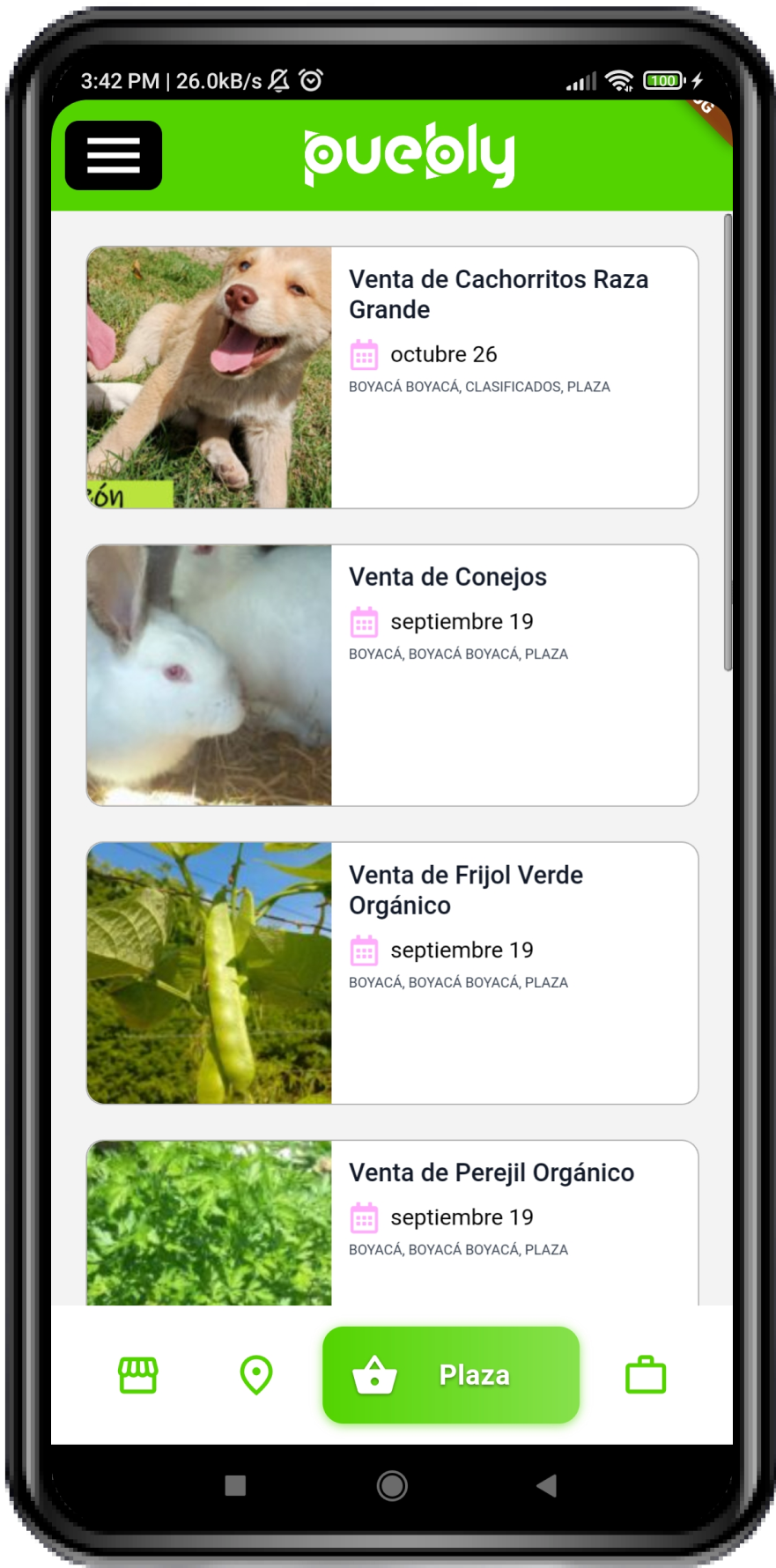 Actualmente Puebly se encuentra disponible para dispositivos Android, próximamente estará disponible para iPhones.